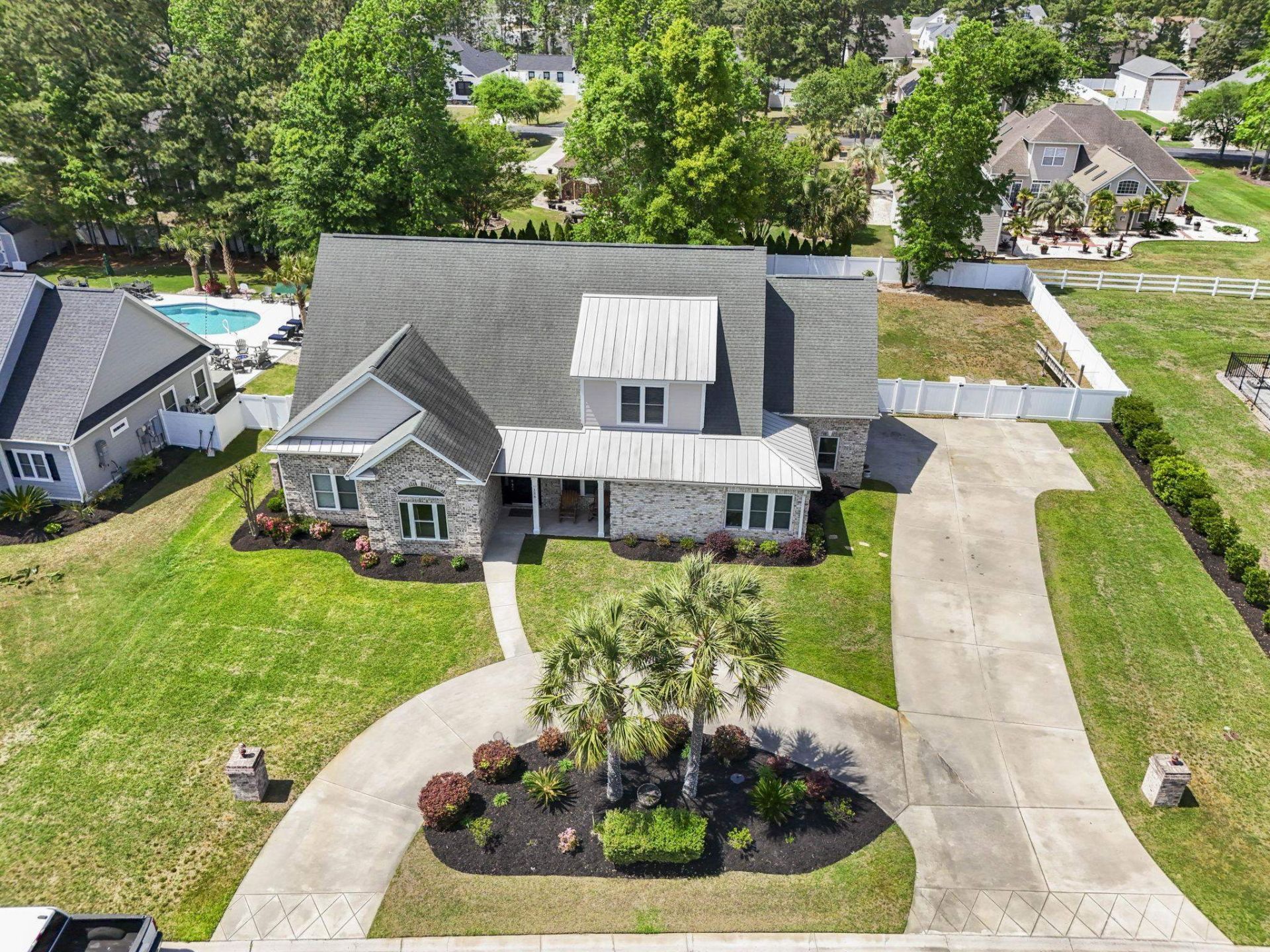 Absolutely stunning custom home located in a gated community, featuring an incredible backyard retreat! From the thoughtfully designed interior to the exceptional outdoor living space, this home truly stands out. Step onto the inviting front porch and into a spacious layout ideal for both everyday living and entertaining. The expansive family room flows seamlessly into the dining area, creating a warm and open atmosphere. The recently remastered kitchen is a standout with beautiful cabinetry, marble countertops, backsplash, stainless steel appliances, a gas cooktop, wall oven, coffee bar and a charming breakfast nook. The first-floor primary suite offers comfort and privacy, complete with dual walk-in closets featuring custom built-ins and a spa-like bathroom with double vanities, a soaking tub, and a walk-in shower. Quality craftsmanship is evident throughout, with tile and wood flooring and tiled showers in every bathroom. Also on the main level are two additional bedrooms, a full bath, powder room, and laundry room. Upstairs provides even more versatile space, including two additional bedroomsone ideal for a home office or gymalong with a loft, full bath, and an impressive theater room. Step outside through the screened porch and experience your own private oasis. The outdoor kitchen, complete with a Brazilian grill, overlooks a sparkling in-ground pool and jacuzzi, all set within a large fenced backyard with plenty of room to play and entertain. This home has been meticulously built and maintained, offering both luxury and functionality. Conveniently located just minutes from all that the Grand Strand has to offer, this is an opportunity you wont want to miss. Schedule your private showing today!