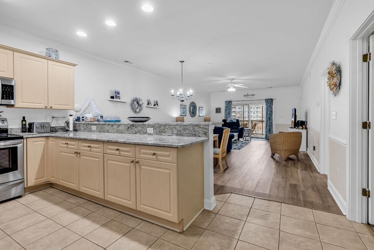 Welcome to your perfect place at the beach! This beautiful 2 bedroom, 2 bath condo has never been rented and has been lovingly maintained, offering stunning water views from your private second-floor screened porch plus the convenience of an elevator for easy access. From the moment you walk in, youre greeted by an open and airy floor plan featuring granite countertops, stainless steel appliances, a huge breakfast bar, and an abundance of cabinet and counter space. The spacious dining area flows seamlessly into the oversized living room, creating the perfect space for entertaining or simply relaxing after a day at the beach. Luxury vinyl plank flooring and smooth ceilings add a clean, modern touch throughout. The primary suite is a true retreat with a massive walk-in closet and an en-suite bath complete with double sinks and plenty of storage. The guest bedroom is generously sized and offers private access to the second full bath, making it ideal for visitors. Enjoy peaceful water views from your screened porch, perfect for morning coffee or evening unwinding. Located just a short drive from the beautiful beaches of Myrtle Beach and all that the Grand Strand has to offer, youre also minutes from Broadway at the Beach known for its top-tier dining, shopping, and entertainment. If youve been searching for the perfect beach home whether as a primary residence, second home, or investment.... this is the one.