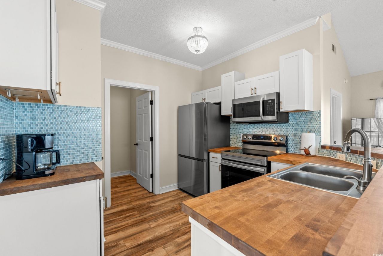 Welcome to 5022 Belleglen Ct #202 in Myrtle Beach, a beautifully updated 3-bedroom, 2-bath top-floor end-unit condo in the gated community of The Fountains at Carolina Forest. This move-in-ready home features vaulted ceilings, new LVP flooring, fresh paint, modern lighting, and a fully renovated kitchen that elevates the open-concept layout. All bedrooms include walk-in closets, while the spacious primary suite offers private access to the screened-in porch, perfect for relaxing with views of the quiet community setting. Additional conveniences include a full-size laundry room with washer and dryer, plus an exterior storage closet for beach gear or seasonal items. Enjoy low-maintenance living with access to a community pool, all within minutes of top-rated Carolina Forest schools, shopping, dining, golf courses, and a short 15-minute drive to the Myrtle Beach coastline. With the HOA fee already paid for next month and no upcoming assessments, this condo delivers exceptional value and an unbeatable location.