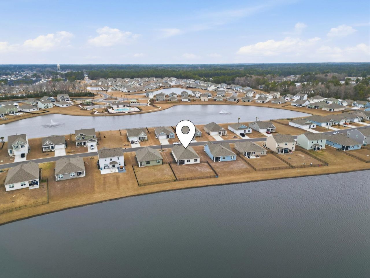 Move-in ready and thoughtfully upgraded, this 2024 DR Horton home sits on a scenic pond homesite in Ridgefield and offers one-level living with modern finishes, smart features, and a prime location just minutes from the beach, shopping, dining, golf, and medical facilities. The open-concept layout features luxury vinyl plank flooring throughout the main living areas, creating a seamless flow between the kitchen, dining, and living space. The kitchen includes granite countertops, a center island, white cabinetry, stainless steel Whirlpool appliances, a walk-in pantry, and a large single-basin sink. The primary suite overlooks the pond and features upgraded carpet with enhanced padding, a walk-in closet with added shelving, and an en-suite bath with updated double vanity, upgraded countertop sink bowls, modern fixtures, a walk-in shower, and a linen closet. Two guest bedrooms offer walk-in closets with shelving and ceiling fans, and the guest bathroom includes an updated vanity and tub/shower combination. Additional highlights include ceiling fans throughout, updated vanities, new washer and dryer, refrigerator, 2-inch wood blinds, smart home technology with video doorbell, smart lock, exterior lighting, programmable thermostat, and a two-car garage. Outdoor living features a covered front porch, screened-in rear porch, rear patio, and fully fenced backyard. Ridgefield amenities include a clubhouse, fitness center, resort-style pool, and playground, with easy access to Highway 544 and Highway 501, downtown Conway, Carolina Forest, Myrtle Beach, retail centers, grocery stores, restaurants, Conway Medical Center, and the Atlantic Ocean.