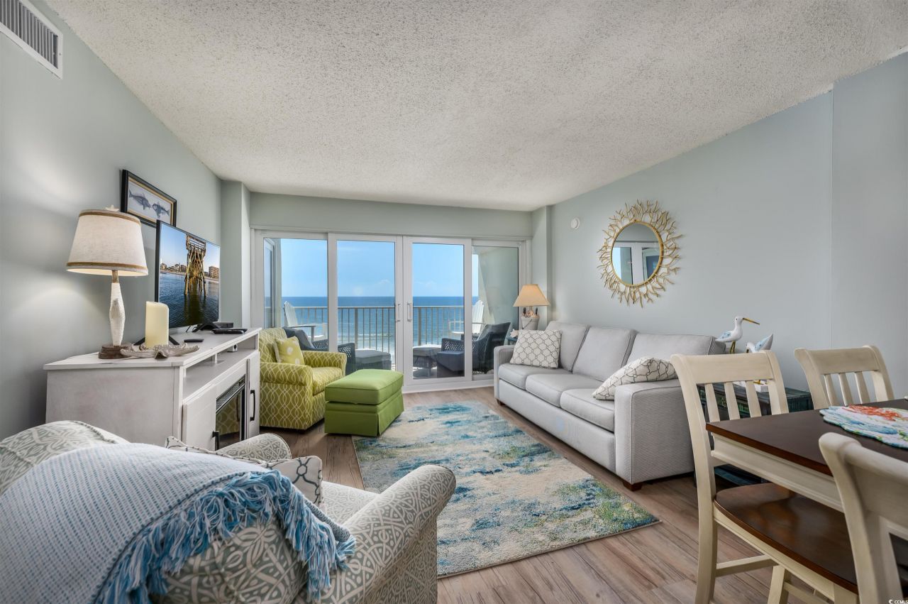 Step into coastal luxury with this beautifully appointed 2-bedroom, 2-bath oceanfront condo, showcasing stunning ocean views from the living area and private balcony. Every detail has been thoughtfully updated to create a light-filled haven where the ocean is always the star. The kitchen boasts glass backsplash, brand-new stainless-steel appliances, solid surface countertops, and sleek white cabinetry. Both bedrooms offer spacious layouts with storage. Enjoy your morning coffee gazing at the sunrise across the Atlantic or listen as the waves crash against the sand during the evenings on your own private balcony. Lots of upgrades completed by seller including new sliding glass doors and entry doors to storage and unit have just been replaced, new paint, LVP floors, etc. Carolina Dunes is one of few buildings that have secure access to inside of building. Also, in peak season, at Carolina Dunes, no need to worry about a spot on the beach. Whether you are looking for a full-time residence, vacation escape, or an investment property, this turn-key condo is ready to deliver the perfect blend of style, comfort, and breathtaking ocean views.