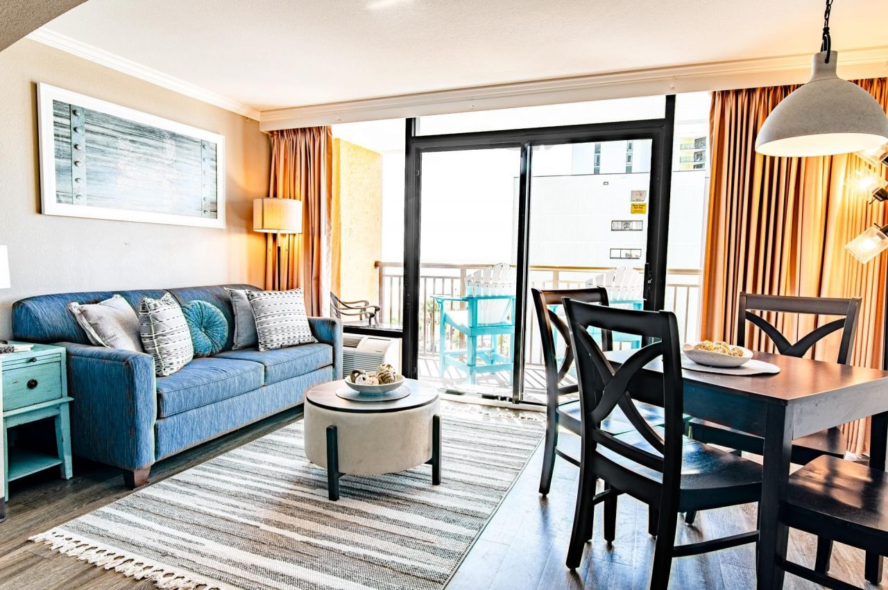 Enjoy sparkling ocean views from this magnificent Caravelle Resort efficiency unit. From the cheerful kitchen to the well-appointed bath, and complete with a comfortable living/dining area featuring sliding glass doors to a private balcony and sleeping area featuring a luxurious king-size bed, this spacious unit offers the perfect backdrop to your Myrtle Beach experience. The resort itself offers so many amenities, you may never want to leave the property! Take a dip in the indoor and outdoor pools, splash in the waterpark, or float around the lazy river. Enjoy a bite to eat in the onsite restaurant or cool off with an ice cream at the soda shop. You can even pick up a Myrtle Beach t-shirt at the resort gift shop. The seventh-floor sundeck overlooking the ocean is relaxation-ready with complimentary hammocks. This delightfully decorated condo offers easy access to the beach and is located next to all the best Myrtle Beach has to offer, including delicious eateries, a bevy of golf courses, award-winning off-Broadway shows, public fishing piers, and intriguing shopping adventures along the Grand Strand. Also conveniently located close to your everyday needs, including grocery stores, banks, post offices, medical centers, doctors offices, and pharmacies, this space is perfect for both a vacation getaway and longer stays. Checkout our state-of-the-art 3-D Virtual Tour.