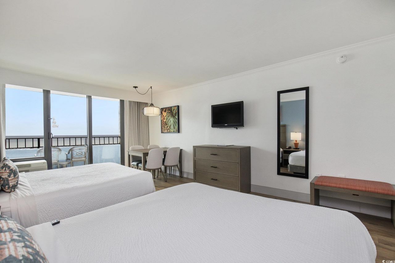 Incredible ocean views from this fully furnished DIRECT OCEANFRONT efficiency in the highly sought after Ocean Reef Resort! This wonderful unit includes two NEW queen beds, updated bathroom, full kitchenette with NEW appliances, NEW flooring, smooth ceilings and fantastic ocean and sunset views from the private balcony. It is also a lockout with its sister unit on the market, unit 1505. Ocean Reef Resort offers an incredible amenities including a large outdoor pool, hot tubs, fitness center, lazy river, indoor pool, kiddie pools, shuffle board, volleyball, arcade, water park and direct beach access. HOA fee covers unit electric, water, sewer, cable TV, internet, insurance. This resort simply has it all. Convenient to Broadway at the Beach, shopping, dining, championship golf, and the beautiful Atlantic Ocean. Perfect as a permanent residence, vacation getaway or investment opportunity!!!