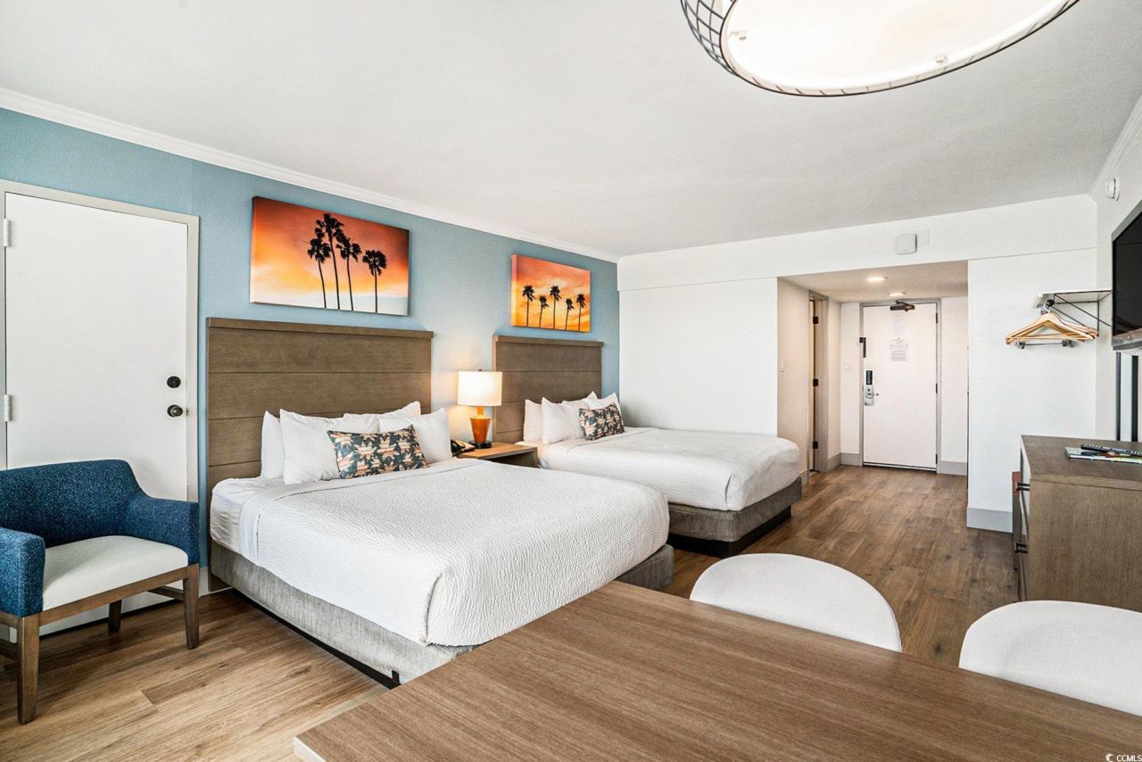 Amazing ocean views from this fully furnished DIRECT OCEANFRONT efficiency in the highly sought after Ocean Reef Resort! This beautiful unit includes two NEW queen beds, NEW flooring, updated bathroom, NEW refrigerator, NEW microwave, smooth ceilings and fantastic ocean and sunset views from the private balcony. It is also a lockout with its sister unit on the market, unit 1506. Ocean Reef Resort offers an incredible amenities including a large outdoor pool, hot tubs, fitness center, lazy river, indoor pool, kiddie pools, shuffle board, volleyball, arcade, water park and direct beach access. HOA fee covers unit electric, water, sewer, cable TV, internet, insurance. This resort simply has it all. Convenient to Broadway at the Beach, shopping, dining, championship golf, and the beautiful Atlantic Ocean. Perfect as a permanent residence, vacation getaway or investment opportunity!!!
