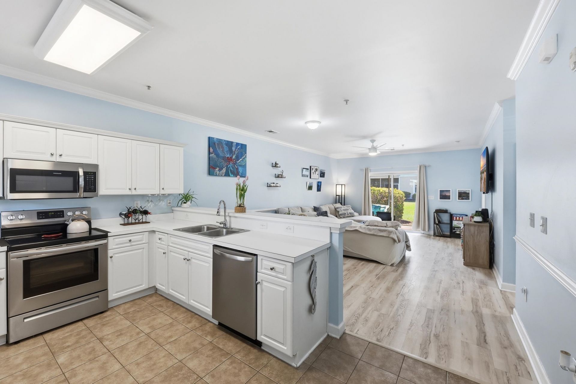Looking for low-maintenance living, a relaxing coastal getaway, or an investment opportunity? This beautifully maintained 2-bedroom, 2-bath first-floor unit in Heatherstone at Berkshire Forest is a must-see! This move-in ready condo features no carpetenjoy durable LVP flooring and tile throughoutalong with newer paint and ceiling fans in every room. The open-concept layout includes a bright kitchen with white cabinetry, stainless steel appliances, and a breakfast bar that flows seamlessly into the living and dining areasperfect for everyday living and entertaining. The split-bedroom floor plan offers added privacy, with a spacious primary suite featuring a walk-in closet and private bath, while the guest bedroom is ideal for visitors or a home office. Enjoy peaceful mornings or unwind in the evening on the screened-in porch with tile flooring. Simplified living is easy with HOA services covering lawn care, water, sewer, trash, pest control, and community pool access, along with sidewalks, walking paths, and scenic lake views throughout the neighborhood. Short- and long-term rentals are allowed (2-night minimum). Conveniently located near River Oaks Golf Course and just minutes from the beach, shopping, dining, golf, medical facilities, and more.