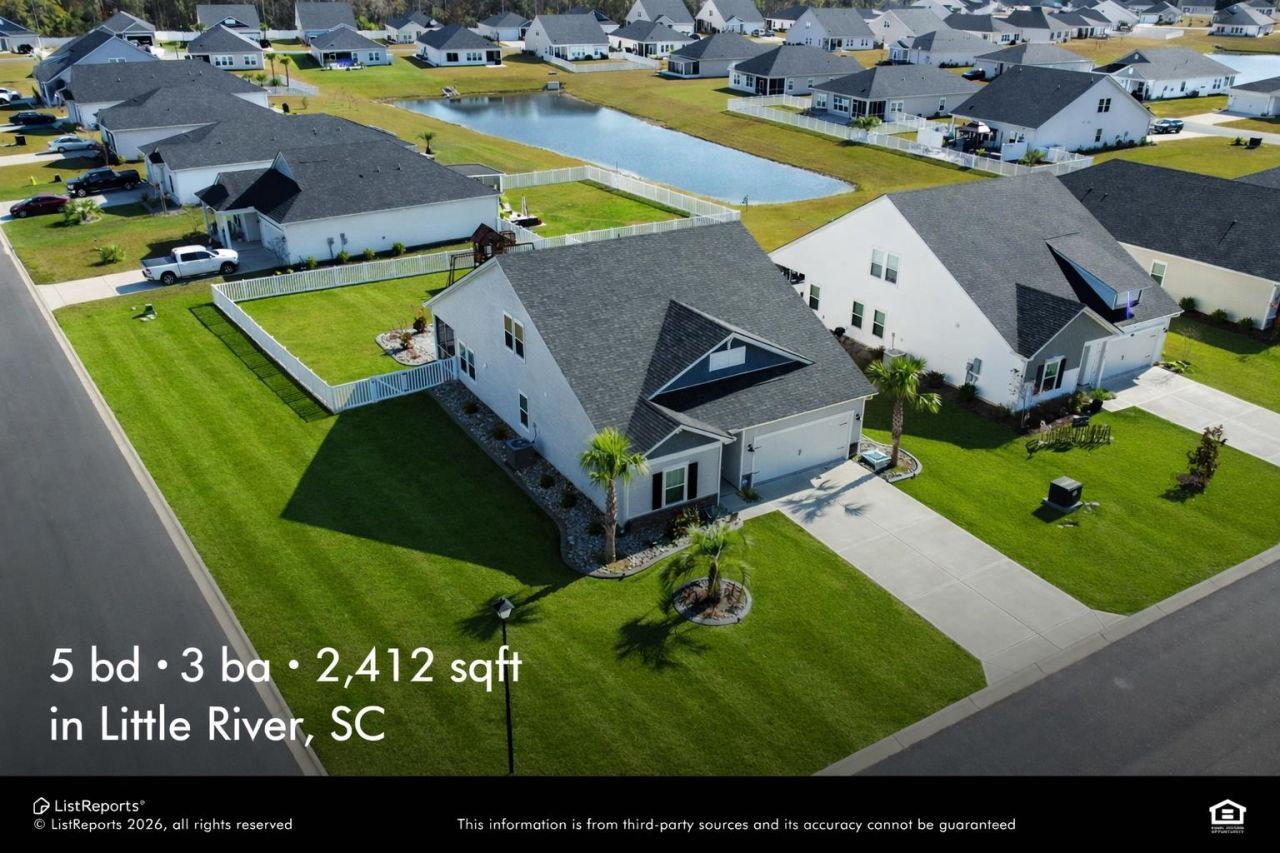 5 bedrooms, water views, and a fully fenced yardrare to find all three in Little River. Water view, space to spread out, and upgrades already donethis Little River home is built for how you actually live. Set on an extra-large corner lot in Creekside Point, this five-bedroom, three-bath home offers a rare combination of rear water view and fully fenced backyard, creating both openness and privacy you dont often find together. Inside, the layout is designed for connection. The kitchen anchors the home with quartz countertops, stainless steel appliances, a large island, and upgraded cabinetry with pull-out drawers, all flowing naturally into the main living and dining areas. Whether its a quiet night in or a full house, the space adapts easily. Step out back and it clicksscreened porch overlooking the water, extended stamped-concrete patio, and palm-lined yard. Its the kind of setup that makes you want to stay home a little more and entertain a little more often. The main-level owners suite offers separation and convenience with a walk-in closet and private bath, while upstairs gives you two additional bedrooms, a full bath, and a bonus roomideal for guests, work-from-home, or a second living area. Youre not just buying a homeyoure stepping into Little Rivers coastal lifestyle, with quick access to North Myrtle Beach, the Intracoastal Waterway, marinas, golf, dining, and shopping. Add in the HOA-included high-speed internet and trash service, and everyday living gets a little easier. If youve been searching for a five-bedroom home with a water view, fenced yard, and corner lotthis one brings it all together.