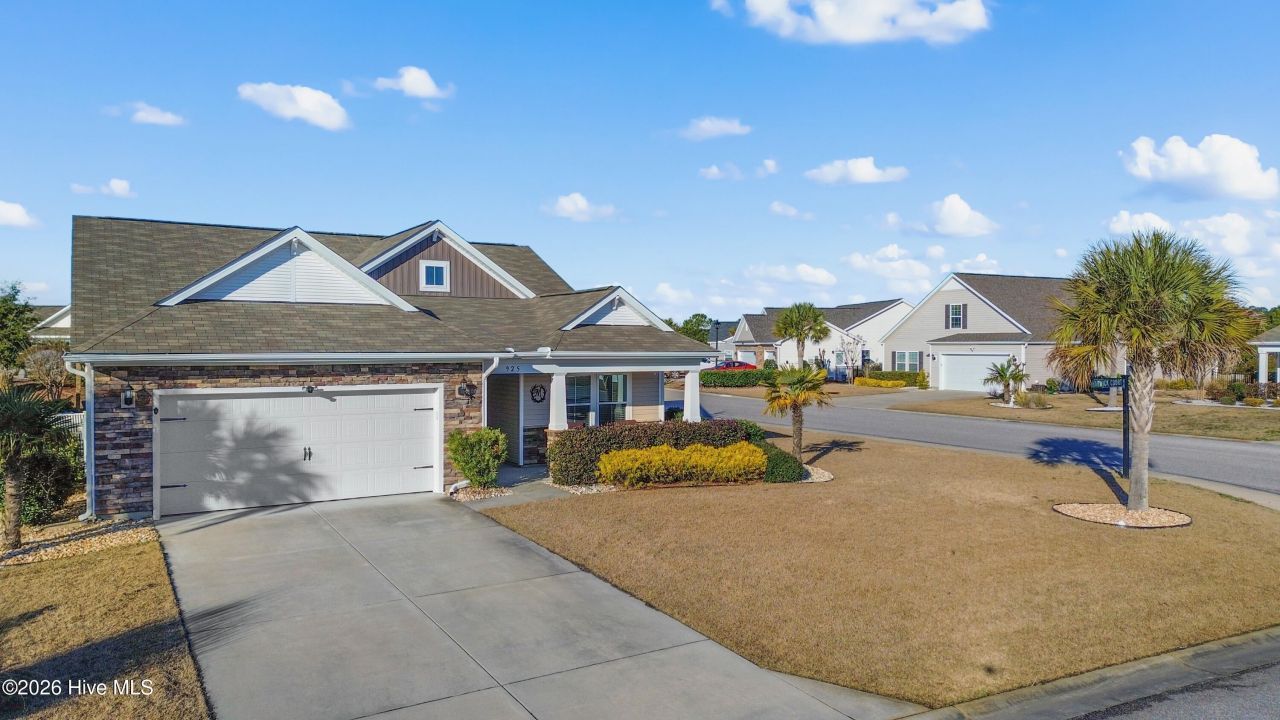 Beautiful home in Chatham Glenn by renowned Real Star Builders, thoughtfully designed with comfort and entertaining in mind. This 3-bedroom, 2-bath residence features an open floor plan with luxury vinyl plank flooring and tile flowing seamlessly from the welcoming foyer through the family room, kitchen, and primary bedroom. Quality finishes include pendant and recessed lighting, crown molding, a tray ceiling, and an eat-in center island. The kitchen opens effortlessly to the main living space, while a dedicated laundry room with utility sink adds everyday convenience. The spacious primary suite is light and airy, offering dual vanities and a walk-in closet. Step outside to a stunning screened back porch that leads to an outdoor patio adorned with bistro-style lighting - perfect for relaxing evenings or hosting gatherings. Situated on a desirable corner lot with irrigation, the home is just steps from the pristine community pool. A four-car driveway and oversized two-car garage provide ample parking and storage. Ideally located between Wilmington and Myrtle Beach, and just minutes from the pristine shores of Sunset Beach and Ocean Isle Beach, with shopping and dining close by. This home truly checks all the boxes - welcome home.Note: Camera over the garage and the weather station on the 6x6 pole in the back do not convey,